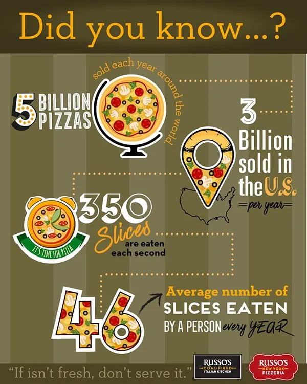 Why do we do all this? We want to make sure that those 46 slices that the average person eats each year uphold the Russo Family Promise “If it’s not fresh, don’t serve it.”